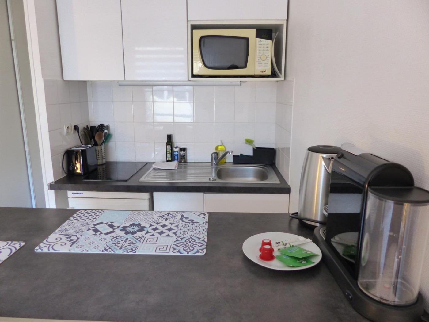 Appartement 1 Chambre. This apartment comprises 1 living room, 1 separate bedroom and 1 bathroom with a shower and free toiletries. Meals can be prepared in the kitchen, which comes with a stovetop, a refrigerator, kitchenware and a microwave. The apartment provides a coffee machine, a dining area, a wardrobe along with heating. The unit offers 1 bed.